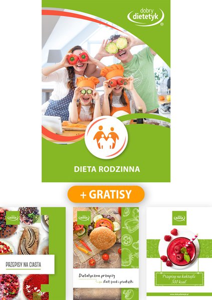 Specjalnie opracowany Program Żywieniowy dla CAŁEJ RODZINY, która wspólnie chce zadbać o zdrowy sposób odżywiania względnie uporać się z nadmiarem kilogramów. Opracowanie zawiera dwa 30-dniowe jadłospisy: oddzielny dla mężczyzny (2000kcal) i oddzielny dla kobiety (1500kcal). Ten drugi może być również stosowany przez dzieci. Program żywieniowy w przeważającej części został skomponowany z tych samych produktów aby ułatwić jego praktyczne stosowanie. Uwzględnia jednak różnice w zapotrzebowaniu na składniki odżywcze. W diecie mężczyzn postawiono duży nacisk na profilaktykę choroby niedokrwiennej serca oraz cukrzycy typu 2. Dieta dla kobiet jest bogata w składniki wspomagające pracę układu hormonalnego oraz kondycję włosów, skóry i paznokci.
