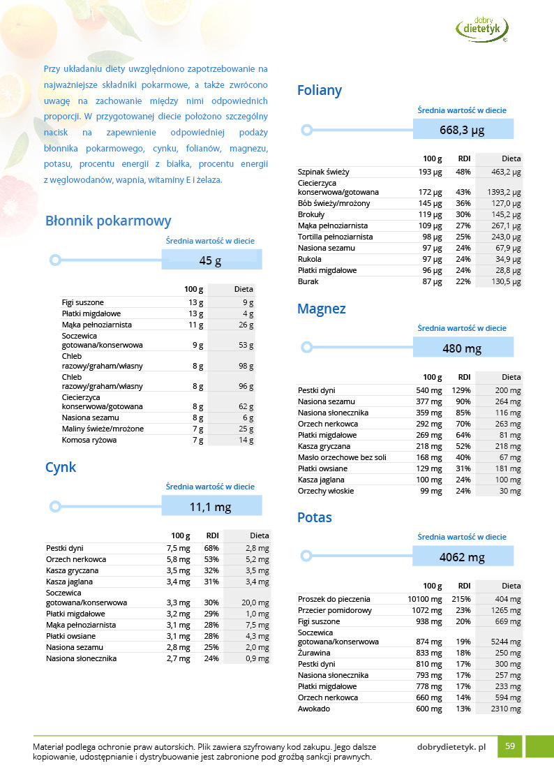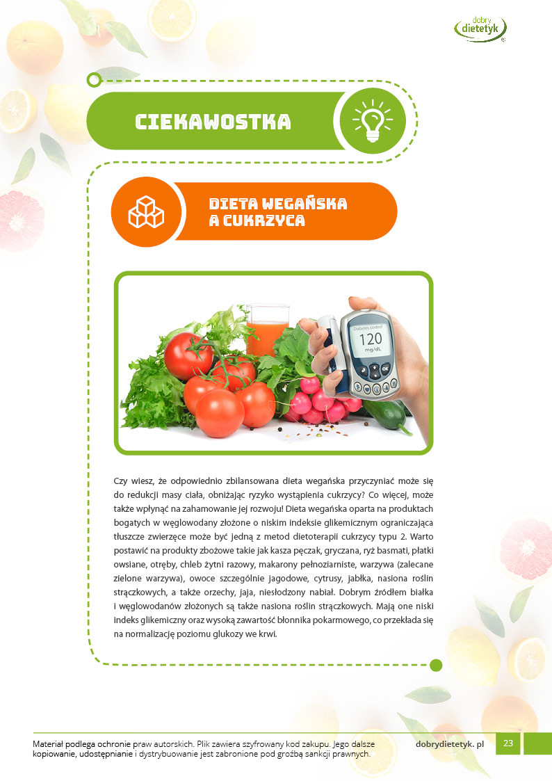 Dodatkowo do opracowanego planu dietetycznego otrzymasz atrakcyjnie przygotowane ciekawostki i wiadomości żywieniowe, które mam nadzieję pozwolą Ci zrozumieć wiele spraw związanych z nurtującym Cię problemem, a także przyczynią się do zwiększenia ogólnej wiedzy żywieniowej.