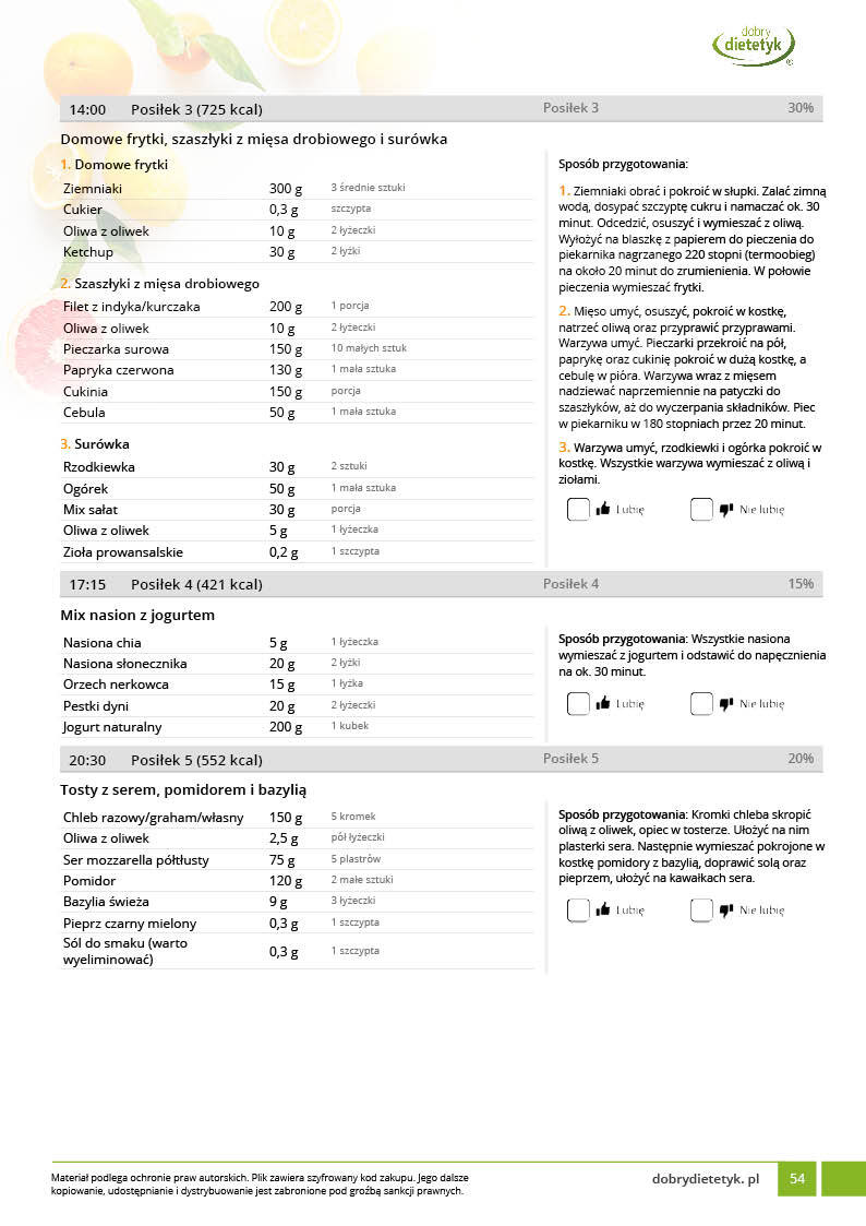• w formie precyzyjnych jadłospisów wielodniowych (na każdy dzień miesiąca jest opracowany osobny jadłospis). Tutaj nie musisz zastanawiać się co zjeść każdego dnia, gdyż będziesz mieć dokładnie wszystko rozplanowane.