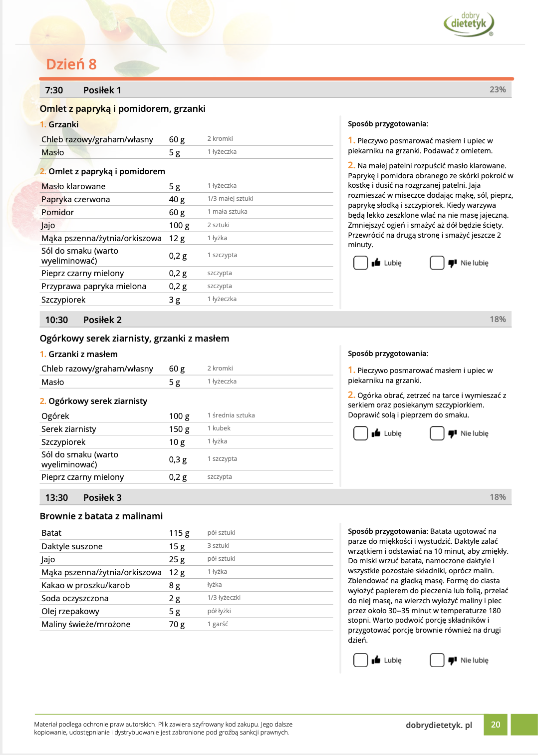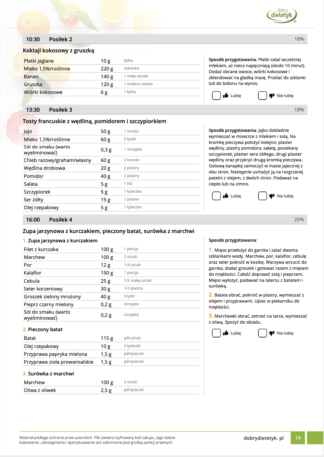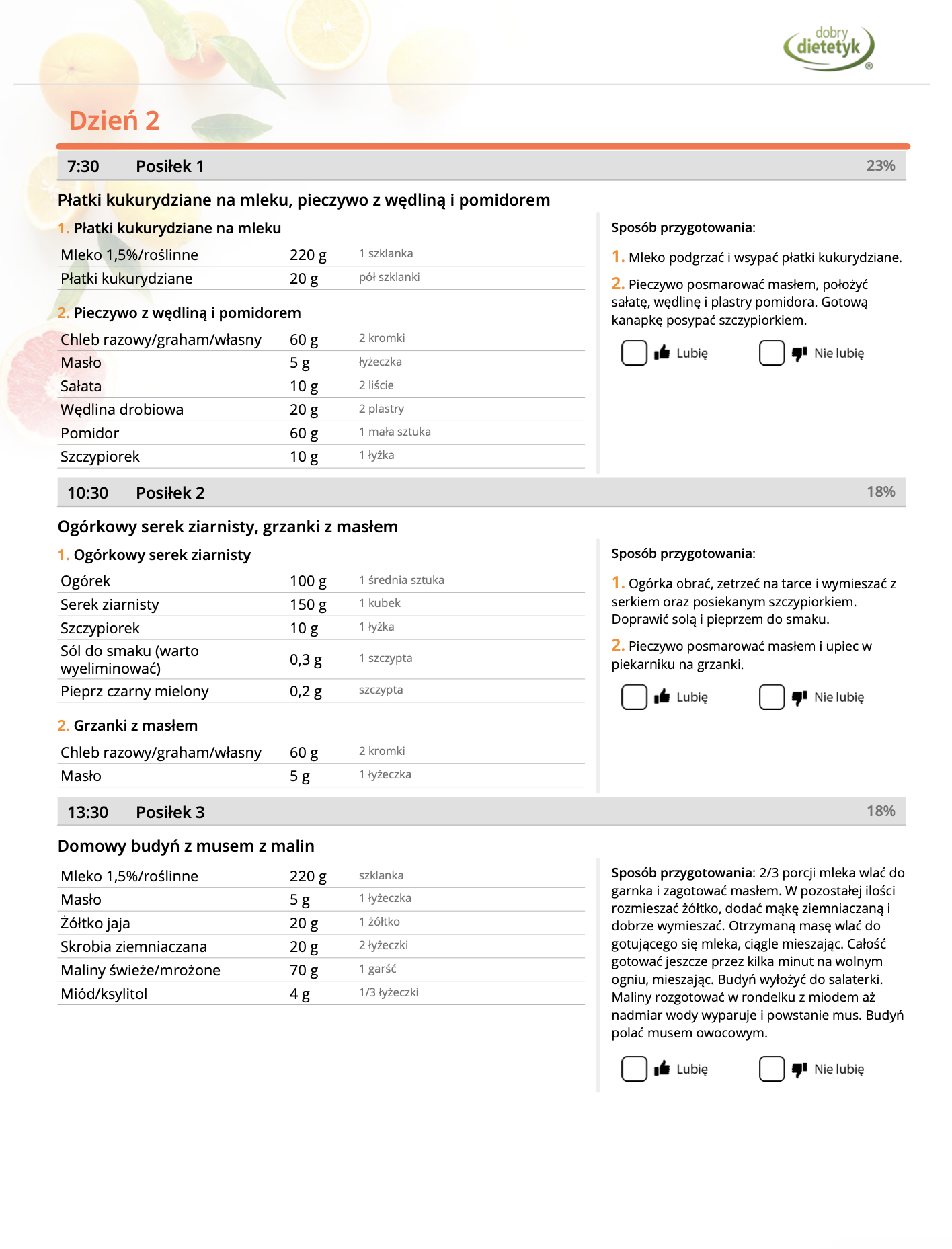 • Liczba posiłków w ciągu dnia: 5